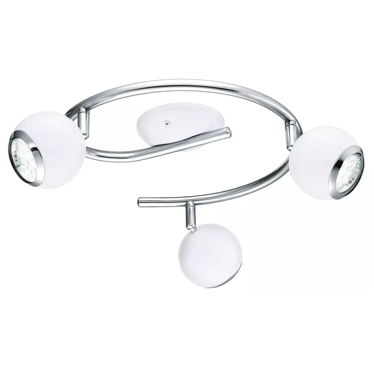 Ultra-modern design with a polished chrome finish, the Bimeda features a spiral design and three adjustable spotlight heads in white steel. The Bimeda is a modern ceiling light, perfect for a contemporary home with its spotlight design and sleek metal finish.