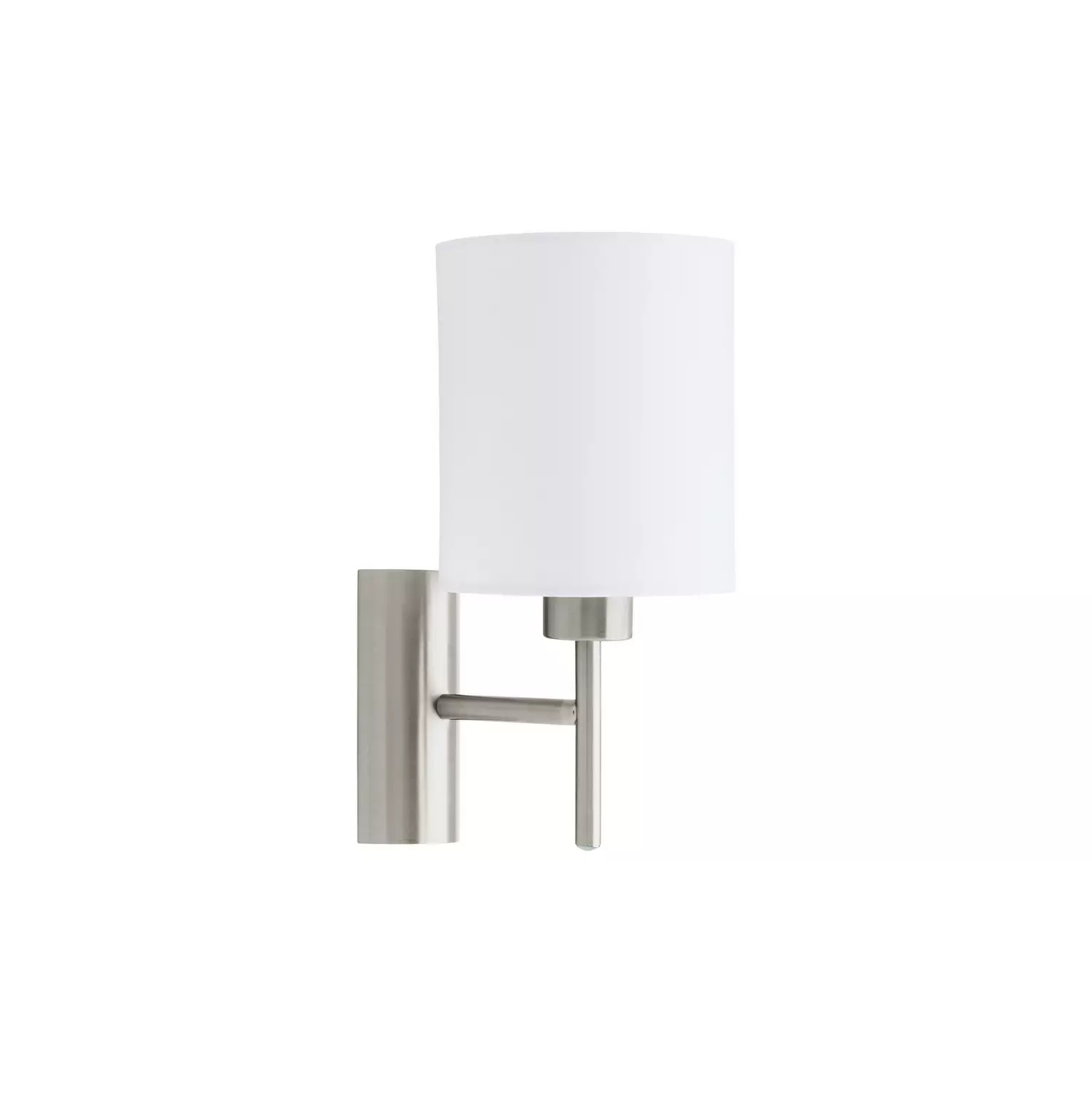 The Pasteri wall light features a matte nickel metal body with a round fabric lampshade finished in white. The product has a simple design that blends with any interior. The wall light can switch on and off easily using the rocker switch on the body. Whether in the bedroom, living room or hallway, the lamp provides cosy lighting for your living space.