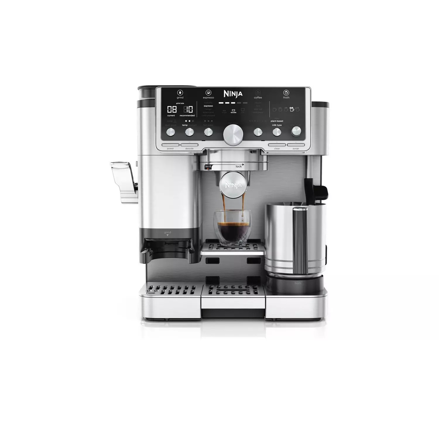 • Integrated burr grinder with 25 settings.